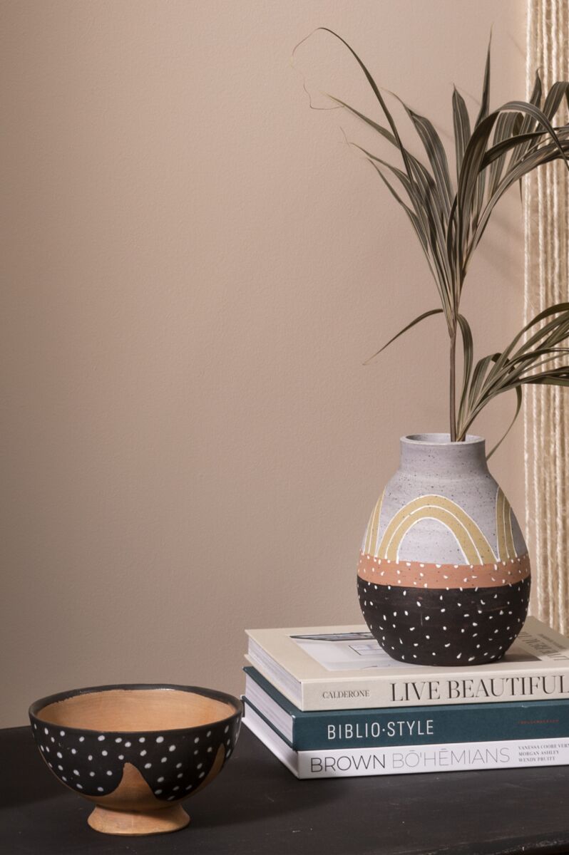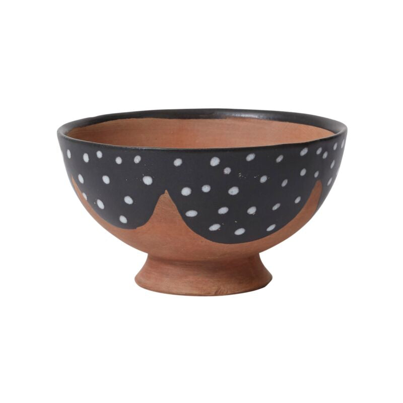 A vibrant vessel for all your collections, the artfully handpainted Hansley Compote makes a statement in any living space. Dripped polka dotted glaze and footed bowl marry in this whimsical yet sophisticated piece.