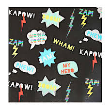 These cool paper napkins are perfect for superheroes to use. Decorated with cartoon patterns embellished with shiny holographic silver foil.Quantity: